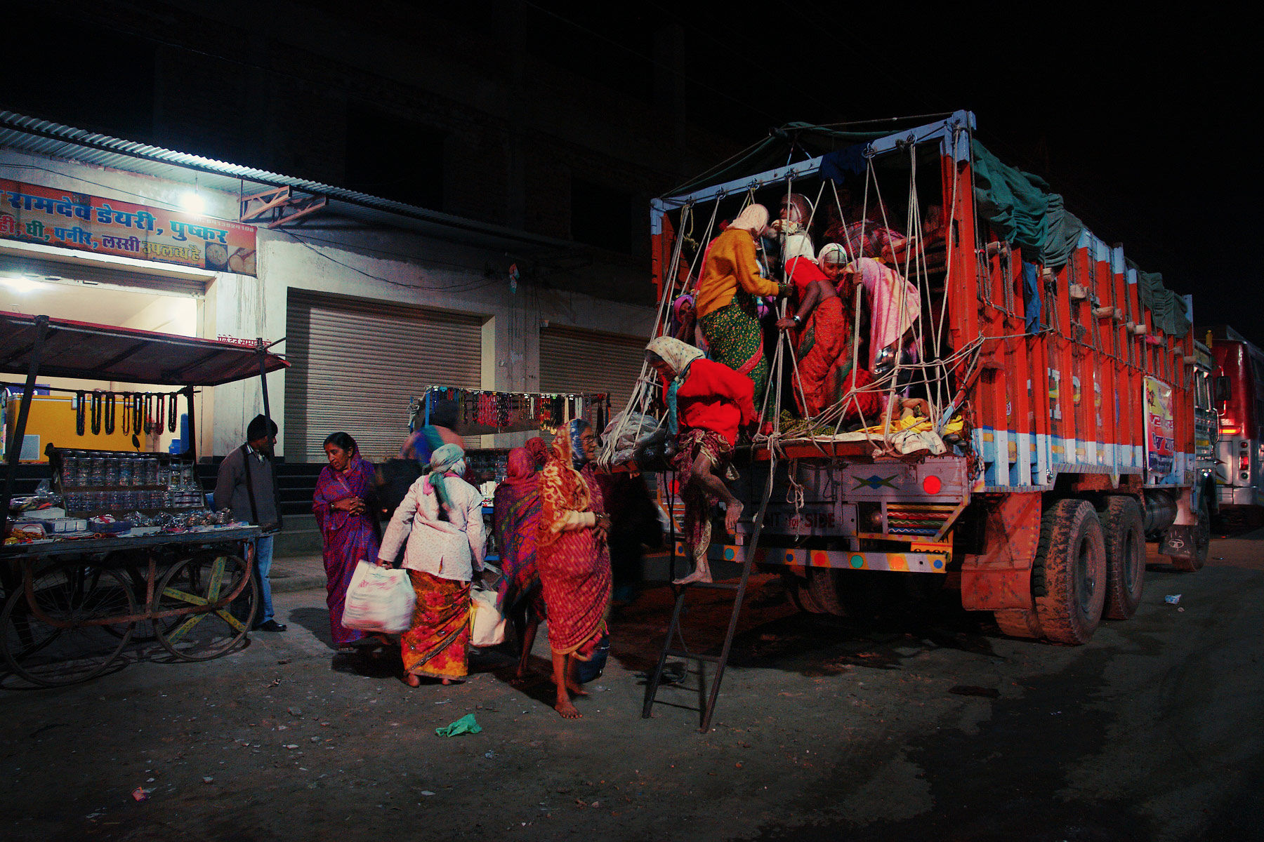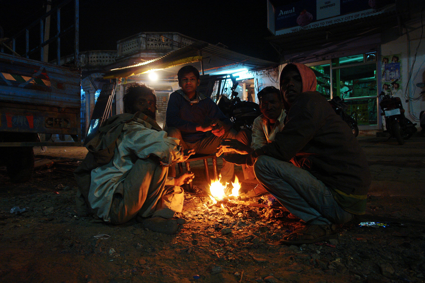 На Пушкар спускалась ночь. Так как мы в горах — холодает быстро. Люди грелись у придорожных костров. Обезьяны, обитающие на гатах вокруг озера, заворачивались в свои одеяла и отходили ко сну. Уютной картиной вырисовывалось где-то это время на окраине города, среди цыганских костров. Из кузова притормозившего грузовика выползло 43 старушки. В принципе, их можно было пересчитать вместо барашков на ночь.